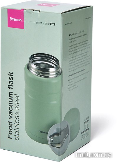 | Информация | Компания FISSMAN представляет новую серию термосов с широким горлом. Такой термос отлично подойдет для сохранения температуры первых, вторых блюд, детского питания и даже мороженного! Вы можете есть прямо из термоса благодаря широкому горлышку, а можете использовать крышку в качестве тарелки для сервировки стола. Внутренняя часть термоса изготовлена из высококачественной 304-й стали. |