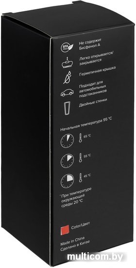 | Информация | Двухслойная конструкция из пластика внутри и нержавеющей стали снаружи. Герметичная завинчивающаяся крышка с откидным клапаном для питья. |