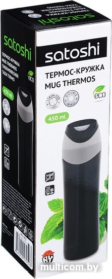 | Информация | Кружка-термос SATOSHI сохраняет объемом 450мл напитки теплыми дольше обычного. Изделие выполнено из нержавеющей стали, обладающей гигиеничностью, отличными теплоизоляционными свойствами и повышенной устойчивостью к механическим повреждениям. Надежная крышка исключает проливание жидкости и испарение тепла. Такой аксессуар удобно использовать на отдыхе, работе и в автомобиле. |