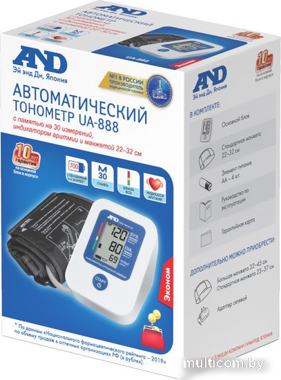 | Информация | Автоматический тонометр со стандартной манжетой 22-32 см Стандартная манжета 22–32 см Индикатор аритмии предупреждает о нарушениях нормальной частоты или периодичности сердечных сокращений во время измерения Гарантия на основной блок в корпусе — 10 лет Память на 30 измерений, расчет среднего давления Цветная шкала ВОЗ (Всемирной организации здравоохранения). Графический индикатор поможет моментально оценить Ваше артериальное давление в точном соответствии с классификацией Всемирной организации здравоохранения Измерение одной кнопкой |