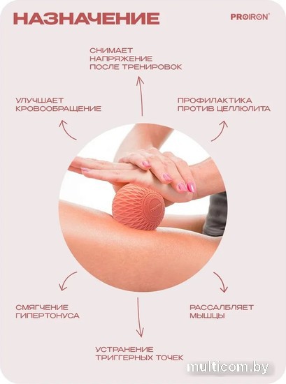 | Информация | ? Массажный мяч Proiron М63РОЗ - специальный инструмент для проведения миофасциального релиза и улучшения гибкости тела. Изготовлен из 100% латекса, прочный, долговечный и без запаха. Обладает хорошим сцеплением с кожей, что позволяет использовать его на скользких поверхностях. ? Компактный диаметр мяча делает его идеальным для работы с различными участками тела. Можно использовать в любом месте и в любое время. Помогает улучшить кровообращение, расслабить мышцы, устранить болевые ощущения и снять напряжение, способствует разработке глубоких тканей и улучшению подвижности суставов. ? Подходит для массажа различных частей тела, включая спину, шею, плечи, бедра и икроножные мышцы. Улучшает гибкость и подвижность мышц, особенно важно для спортсменов. Помогает расслабить мышцы и снять напряжение после длительного сидения за компьютером или в офисе, а также улучшить подвижность у пожилых людей. ? Может помочь устранить болевые ощущения и улучшить подвижность у людей, страдающих от мышечных заболеваний. Подходит для самомассажа перед и после тренировки. |