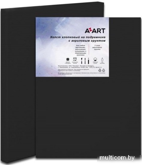 | Информация | Черный грунтованный холст «AZART» на подрамнике изготовлен на бескислотной основе из 100%-ного хлопка и идеально подходит для работы масляными, акриловыми и темперными красками. Имеет 3 слоя акрилового грунта. Особенностью этих холстов является черный цвет покрытия, который позволит использовать в живописи светлые тона. Прозрачные краски, положенные на такой грунт, придадут изображению глубину, выразительность и насыщенность тона. |