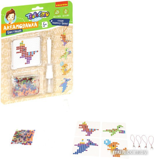| Информация | Любите динозавров? Мы – очень! Представляем Вашему вниманию набор для творчества BONDIBON аквамозаику блестящую «Праздничные динозавры». Серия заготовок для поделок «Творчество с Буки» — это уникальные наборы для творчества, с помощью которых ребенок развивает художественный вкус, мелкую моторику, концентрацию внимания и воображение. Разложите цветные шарики по трафарету, слегка смочите их водой, дайте им высохнуть, и готовая фигурка из ярких бусин застынет! В результате получатся 4 вида динозавров - самых любимых персонажей дети могут носить с собой как брелок. Ребенку будет интересен как процесс, так и результат. В комплекте: блестящие аквабусины - 350 шт, пинцет, схемы сборки – 4 шт, основа, распылитель для воды, подвески для брелоков. Рекомендуемый возраст 5+. Погрузитесь в мир динозавров вместе с набором для творчества BONDIBON аквамозаикой блестящей «Праздничные динозавры» из серии Творчество с Буки и соберите полную коллекцию наших заготовок для поделок. |