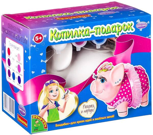 | Информация | Подарок, сделанный своими руками, всегда самый лучший! А если такой подарок еще и полезный, то он, несомненно, понравится кому угодно! А с набором от Бондибон сделать такой подарок – копилку – совсем несложно! В наборе копилка Свинка – краски 6 цветов – кисточка, – инструкция. Сделано из экологически чистых и безопасных для здоровья детей материалов. Материал: керамика, краски, дерево. Упаковка: коробка. Комплектация Копилка-раскраска - 1 шт |