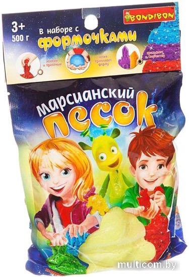 | Информация | Прекрасный игровой набор "Марсианский песок" от бренда Bondibon позволит скрасить игру малыша в песочнице. В комплекте представлены формочки для изготовление разнообразных фигурок, а также пятьсот граммов фиолетового песка, который не прилипает к рукам. Песок легко поддается в процессе лепки, поэтому ребенок сможет сделать аккуратные и красивые фигурки с его помощью. Вес: 500 г. |