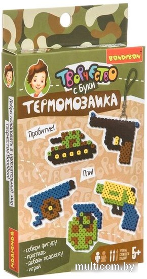 | Информация | Термомозаика 2D Bondibon Оружие (ВВ4235). Качественный товар по выгодной цене! Комплектация Термобусины, основа-планшет, инструкция с цветными схемами сборки, калька |