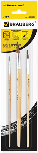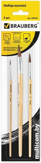 | Информация | Набор из трех кистей разного размера BRAUBERG позволяет начинающим художникам решать любые творческие задачи в детском саду, школе и дома. Кисти из волоса пони отлично впитывают и отдают краску, хорошо держат форму, долговечны и надежны. Благодаря кисти №2 ребенку будет комфортно прорисовывать мелкие детали. Кисти №4 и 7 позволят делать более крупные мазки и линии. Деревянную лакированную рукоятку кисти удобно держать в руке. |