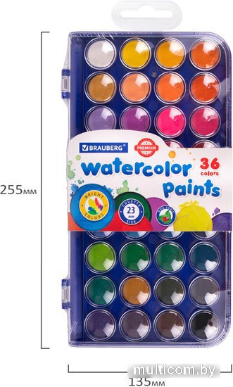 | Информация | Акварель BRAUBERG «PREMIUM» — акварельные краски с высоким содержанием цветного пигмента. Подходят для применения на уроках изобразительного искусства в школах и детских студиях живописи. В наборе 36 насыщенных цветов, которые отлично смешиваются, позволяя создавать множество оттенков. Краски легко наносятся, образуя интенсивное яркое покрытие даже при нанесении в один слой. Обеспечивают однородное окрашивание, быстро высыхают и не портятся со временем. Краски безопасны для детей, нетоксичны. Выпускаются в пластиковом пенале с европодвесом, прозрачной крышкой, круглой формой кювет и отделением для кисточки. Съемную пластиковую крышку можно использовать в качестве палитры для смешивания красок. |