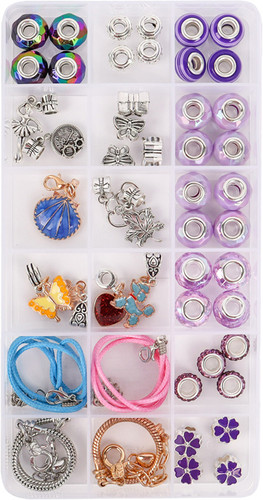 | Информация | ? В комплекте: 36 шт. шармов, 9 шт. подвесок, 1 браслет серебристого цвета длиной 24 см, 1 браслет золотистого цвета длиной 21 см, 1 браслет розового цвета длиной 48 см, 1 браслет голубого цвета длиной 48 см, а также пластиковый футляр. |