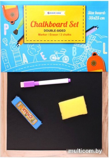 | Информация | Конструкция: двухсторонняя. Размещение: настольное. Материал каркаса: дерево. Комплектация: маркер, губка, мел (2 шт.). |