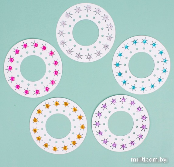 | Информация | Развивает воображение, фантазию, мелкую моторику рук. Для украшения одежды, обуви, причёски, аксессуаров. Комплектность: диски 12 шт с цветными стразами (180 страз). |