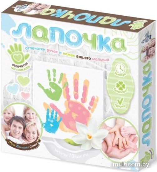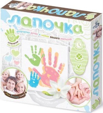 | Информация | В комплект входит всё необходимое для создания очаровательного сувенира, который станет прекрасным элементом декора в доме и подарит множество приятных воспоминаний. Краска в наборе создана специально для самых маленьких и полностью безопасна для малышей. При помощи мягкой губки нанесите краску на ладони всех членов семьи. Сделайте по очереди отпечатки, начиная с самого большого по размеру. Вымойте ручки ваших детей и остальных членов семьи. Как только отпечатки подсохнут, можно повесить ваше творение на стену. Внимание! Данная продукция не является игрушкой и предназначена только для взрослых, поэтому рекомендуем вам: держать баночку с краской подальше от малыша; не разрешать детям брать краски в руки или пробовать на вкус; помыть ручку или ножку малыша как до нанесения краски, так и после. |