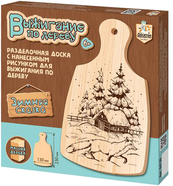 | Информация | Укрась свой дом уютной композицией, созданной старинной техникой выжигания по массиву дерева. Выжигать по дереву просто! Состав: • доска с рисунком – 1 шт. (13 х 23 см) |