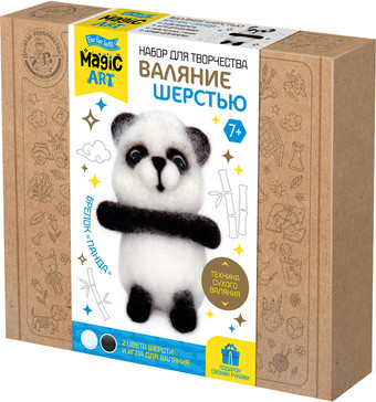 | Информация | ? Набор для валяния "Панда" позволяет создать игрушку или брелок из шерсти. ? К набору прилагается подробная иллюстрированная инструкция. ? Используйте иглу для валяния и губку в качестве подложки. ? Игла для валяния имеет мелкие зазубрины, цепляющие волокна шерсти. ? Втыкайте иглу строго вертикально, чтобы она входила в подложку. ? С помощью набора "Панда" ребенок сделает симпатичную объемную игрушку. ? Процесс валяния игрушек развивает художественный вкус, мелкую моторику и формирует творческое мышление. |