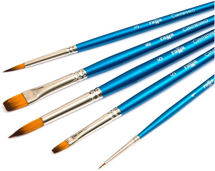 | Информация | Набор кистей из синтетики: круглые №1, 3, 5, плоские № 5, 8. Кисти из синтетики - аналог натурального колонка по параметрам жесткости и эластичности. Производятся из японского полиэфирного волокна высшего качества: универсальны, долговечны, подходят для любого типа красок. |