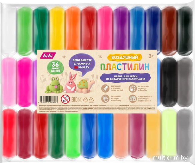 | Информация | Особенностью воздушного пластилина является суперлегкий вес и необычная текстура: он создан специально для детских пальчиков и легко поддается лепке, после высыхания полностью застывает и сохраняет форму фигурки. Мягкий пластилин не пачкает одежду, руки и мебель, не крошится и не тонет в воде. Воздушный пластилин представлен набором из 36 ярких цветов. Цвета можно смешивать между собой и создавать новые оттенки. Легкий пластилин — это не только игра и развлечение. Лепка из воздушного пластилина развивает мелкую моторику рук, координацию, фантазию и воображение. Набор воздушного пластилина — это хороший подарок для ребенка! |