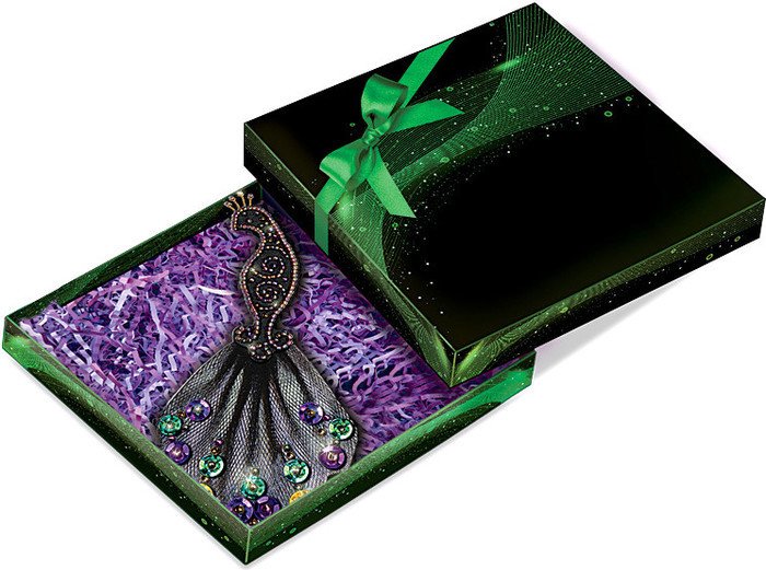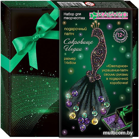 | Информация | Серия «Подарочный патч» - это актуальное украшение, сделанное своими руками, и готовое решение для индивидуального подарка в стильной упаковке. Создать патч «Сокровище Индии» будет интересно как взрослому, так и подростку старше 12 лет, обладающему навыками шитья. Патч, стилизованный под ювелирное украшения в форме павлина (павлин - символ и национальная птица Индии), вышитый сверкающим бисерным узором по фетру, с декором из расшитого бисером и пайетками фатина, будет великолепно смотреться как украшение на платье и как подарок в красочной коробке с декоративным наполнителем. |