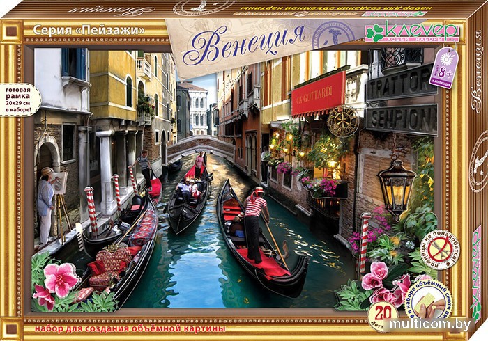 | Информация | Неповторимая Венеция с каналами вместо улиц уносит лодки с мечтающими туристами в очарование старинного города на воде. Эту картину с перспективой канала дети старше 8 лет могут сделать сами, самостоятельно, а дети старше 5 лет — с помощью взрослых. Ножницы и клей не понадобятся, — ведь наши наборы в технике 3D-аппликации специально созданы таким образом, чтобы ребенку было удобно и чисто работать. Вместо клея в наборе объемный двусторонний скотч. С наборами этой серии дети учатся складывать трехмерное изображение из частей, составляя перспективу. Красочная и глубокая готовая рамка входит в набор, — ее не нужно собирать! Размер упаковки: 290x200x30 мм. |