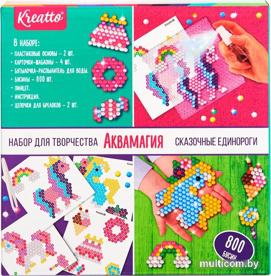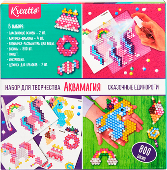 | Информация | С набором Аквамагия ваш ребенок сможет создать из разноцветных бусинок 12 потрясающих фигурок в виде сказочных единорогов и их атрибутов. Расположите картинку-шаблон под прозрачную основу так, чтобы нарисованные на шаблоне бусины совпали с углублениями на основе. Соберите фигурку по шаблону, намочите все бусины водой из пульверизатора и оставьте на 1-2 часа до полного высыхания. За это время все бусинки склеятся между собой, образовав цельную фигурку. Необыкновенная поделка готова! Такое увлекательное занятие развивает у ребёнка мелкую моторику, аккуратность, усидчивость, умение работать по образцу и творческое мышление. В наборе Аквамагия Сказочные единороги 811 деталей: 800 разноцветных бусин (диаметр бусин - 5 мм; каждый цвет в отдельном пакетике), 4 карточки-шаблона со схемами 12-ти фигурок, 2 пластиковые основы, 2 цепочки для брелоков, бутылочка-распылитель для воды, пинцет, цветная инструкция в картинках. Материалы: пластик, картон, металл. |