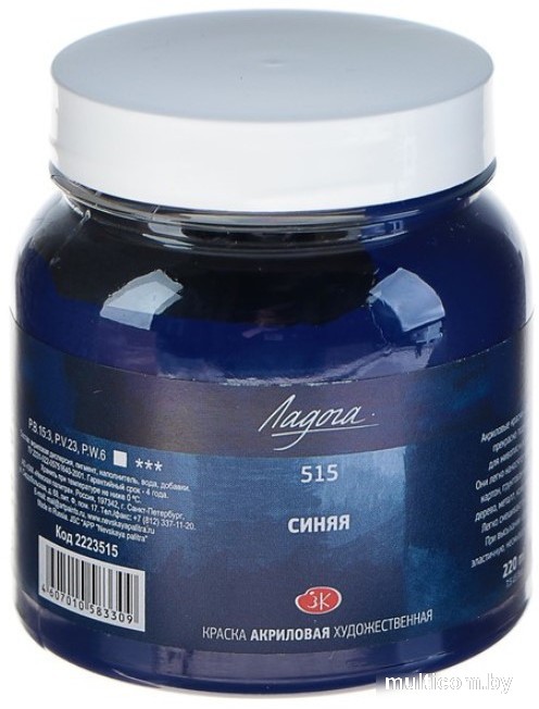 | Информация | - Подходят, как для художественных, так и для декоративных работ. Можно применять для нанесения на холст, картон, бумагу, а также металлические, деревянные, кожаные поверхности. При работе с акрилом стоит учитывать, что краска темнеет после нанесения. - Состав: акриловая дисперсия, пигмент, наполнитель, вода, добавки. |
