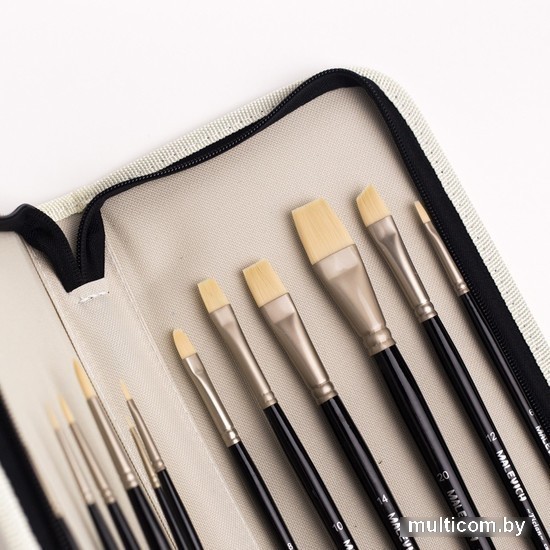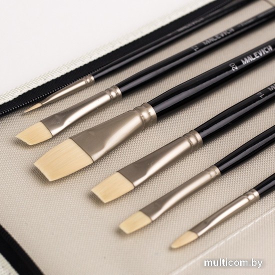 | Информация | Кисти серии "Tician" от компании "Малевичъ" изготовлены из жесткой синтетики белого цвета, имитирующей щетину. Этот ворс отлично подходит для густых красок - таких, как масло, акрил, гуашь, темпера. Кисти выполнены в благородной цветовой гамме: черная лаковая ручка с лаконичной маркировкой и матовая металлическая втулка теплого оттенка делают эти кисти не только надежным художественным инструментом, но и красивым аксессуаром. Кисть держит свою форму даже при частом использовании, ворс прочно закреплен, а втулка не расшатывается со временем. Ручка - длинная. Выставка - короткая. Номер кисти соответствует диаметру обоймы в миллиметрах. В набор входят: бежевый пенал "Малевичъ" для хранения кистей (15.5х37см), а также 12 кистей из серии "Tician": круглые №0, №1.5, №2.5, №4; плоские №2, №4, №6, №10, №14, №20; плоскоовальная №8; скошенная №12. |