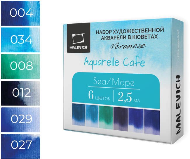 Акварельные краски Малевичъ Veroneze Sea 630922 (6 цветов, 2.5 мл, море)