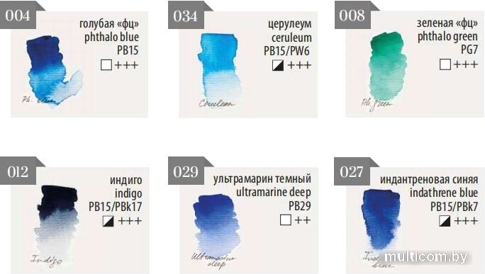 Акварель создана без использования соединений кадмия и животных компонентов. В наборе 6 цветов.