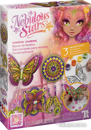 | Информация | ? Набор для творчества Nebulous Stars Hazelia позволит вам создать три очаровательных витража, узнать историю звездочки и её подружки Эланы, а также познакомиться с их философией. ? Соберите понравившийся витраж, используя специальные заготовки из набора, раскрасьте его по своему вкусу и украсьте стразами. ? С помощью присоски поделка крепится к окну, наполняя комнату волшебными переливами и космической гармонией мира звездочки Hazelia. |