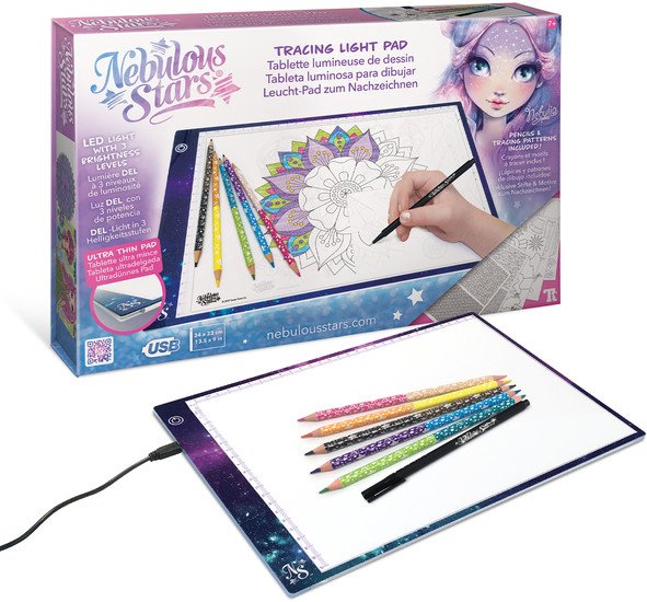 | Информация | ? Световая панель для копирования рисунков от Nebulous Stars. ? Позволяет создавать удивительные мандалы, зентанглы и дизайны одежды. ? Тонкая (5 мм) и легкая, что делает ее стильной, мобильной и практичной. ? Обеспечивает равномерное и яркое освещение без мерцания. ? Сенсорный экран с возможностью регулировки яркости. ? В комплекте история звездочки Nebulia и ее питомца Стеллы. |