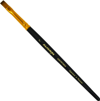 | Информация | Плоская кисть с укороченной вставкой из синтетики пол колонок применяется во всех видах живописи. Анодированная алюминиевая обойма надежно защищает ворсинки изделия и прочно скрепляет с короткой черной матовой ручкой. Прямоугольная форма кисти позволяет использовать инструмент двумя способами: можно работать вершинкой для получения контуров и коротких мазков, а также всей плоскостью пучка для заливки широкими полосами однородного тона. |