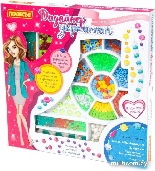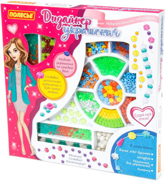 | Информация | Набор для детского творчества "Дизайнер украшений" (683 элемента) (в коробке) от фабрики "Полесье" позволит ребёнку почувствовать себя настоящим дизайнером бижутерии, а также научит создавать удивительные аксессуары! В комплект входит более 600 бусинок, шнурок и резиночка для украшений. Все бусины имеют разную форму и цвет, выполнены из качественного пластика. Разнообразит игру и сделает её ещё интереснее анкета модницы, которая также входит в комплект. С таким набором ребёнок сможет фантазировать, творить, создавать своими руками и играть. Он способствует разностороннему развитию ребёнка. |