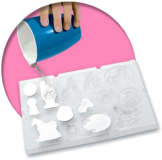 | Информация | Залейте гипс в форму, дайте ему высохнуть и покрасьте, как вам нравится. Отличный способ развития творческих способностей, концентрации внимания и мелкой моторики. Краска и гипс легко удаляются с поверхностей и тканей. |