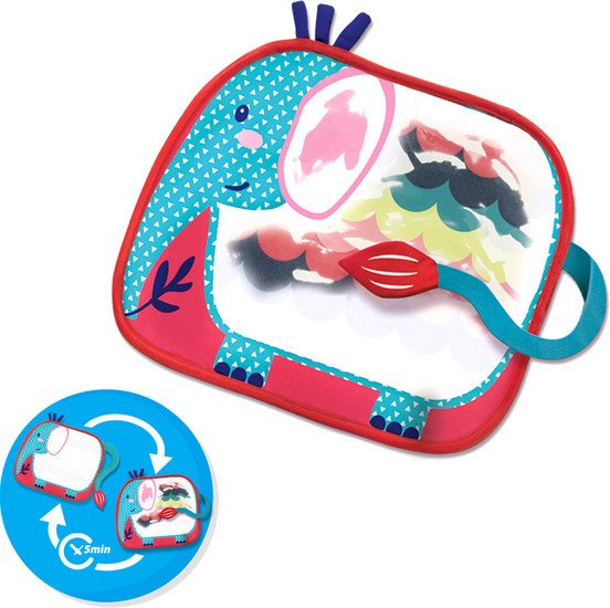 | Информация | С этим ковриком вы продемонстрируете свои самые красивые творения. Смочите хвост слона водой и используйте белую поверхность как холст. Как только цветной мат намокает, создаются веселые и яркие цвета. Напишите свое имя, нарисуйте красивый рисунок или украсьте слона разными фигурками. Вы хотите сделать еще одно произведение искусства? Дайте цветному мату немного высохнуть, а затем вы можете начать снова. |