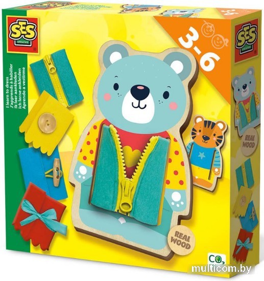 | Информация | Набор для творчества SES CREATIVE Одеваем мишутку (14638) подходит для детей младшего возраста. В комплект входит деревянная фигурка для переодевания (двухсторонняя) и 4 куртки с различными застежками: пуговица, молния, ленты. Набор развивает творческие способности, воображение, концентрацию и мелкую моторику у детей. |