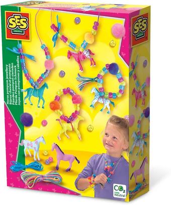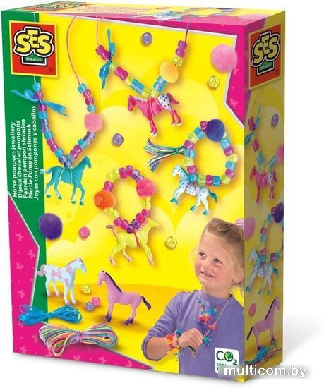 | Информация | С этим набором украшений с помпонами вы можете сделать украшения с яркими подвесками в виде лошадей. Используйте цветную нить, бусины, ленту и помпоны, чтобы сделать красивые украшения, такие как браслеты или ожерелья. Не забудьте надеть на украшение одну из шести специальных подвесок в виде лошади. |