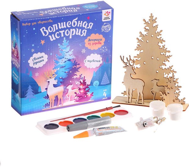 | Комплектация | расходные материалы/ингредиенты (краски), инструменты (кисть), детали для сборки (детали из дерева) |