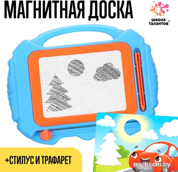 | Информация | Магнитный планшет с трафаретом поможет ребёнку научиться рисовать! Техника работы достаточно проста: нужно провести стилусом по доске, и появится чёрный контур. Если что-то не понравится, достаточно просто потянуть за рычаг, расположенный с боковой стороны доски, и поле сразу станет чистым. |