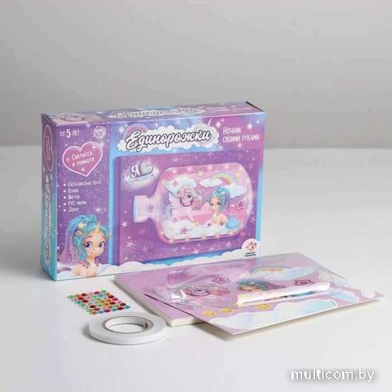 | Информация | В серии наборов для творчества «Ночник своими руками» представлено более 10 видов наборов. С ними ребенок сможет сделать настоящий ночник. Следуя инструкции, приклейте на основу детали из картона и украсьте их стразами, затем установите светодиодную ленту (выведите блок отдельно). После чего установите пластиковый купол и зафиксируйте всю поделку крышкой. Ночник готов! |