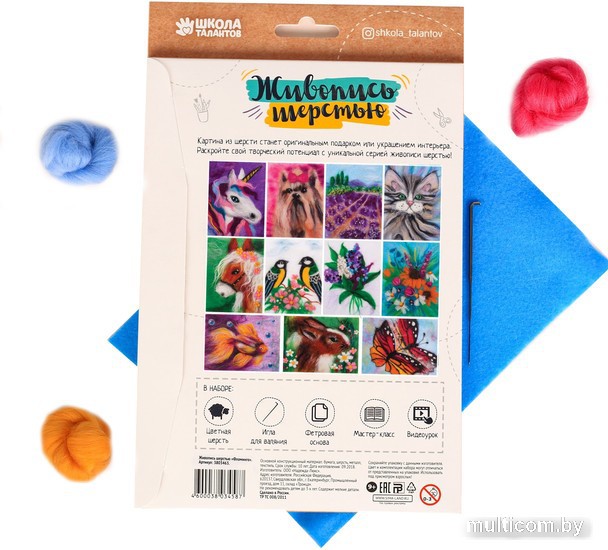 | Комплектация | расходные материалы/ингредиенты (фетр, цветная шерсть,), инструменты (игла) |