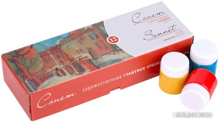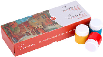 | Информация | Художественные гуашевые краски «Сонет» предназначены для создания учебных работ, макетов, декора и иллюстраций. Краски изготовлены по новой технологии с применением пигментных паст и синтетического связующего. Обладают высокой укрывистостью. После высыхания приобретают бархатистую матовую поверхность. Сбалансированная палитра из 12 цветов в наборе гуашевых красок «Сонет» позволяет решить множество творческих задач начинающего художника при выполнении учебных работ, этюдов и эскизов. |