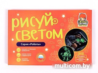 | Информация | «Роботы» — новый набор для рисования светом для изобретательных мальчишек и девчонок. В этом наборе, как и во всех тематических наборах «Рисуй светом», собрана целая коллекция детских развлечений. Можно рисовать светом роботов по 5 большим трафаретам формата А4. На каждом из них изображено по одному персонажу набора — мальчик Макс, роботы Рубик, Болтик, Врум Врумыч, Скам-3000, Радиоласточка. На небольшом трафарете (11?13 см) находятся одновременно все персонажи. В книжке размещены сказки про приключения персонажей и qr-коды для перехода на сказки в аудиоформате. Яркими цветными наклейками можно оформить обратную сторону планшета, странички книжки сказок или любую гладкую поверхность. Большие трафареты превращаются в ночник: нужно поставить планшет с трафаретом на подставку, засветить под любой лампой в течение 10-15 минут, убрать трафарет и выключить свет. Каждый вечер ребенка будет радовать новая светящаяся в темноте картина. В комплекте Планшет для рисования светом (формат А4) Ручка-фонарик 6 трафаретов с изображением персонажей набора: формат А4 — 5 шт.; 11?13 см — 1 шт. Книжка с уникальными сказками про персонажей + ссылка на сказки в аудиоформате — 5 сказок Наклейки Подставка-мольберт Инструкция |