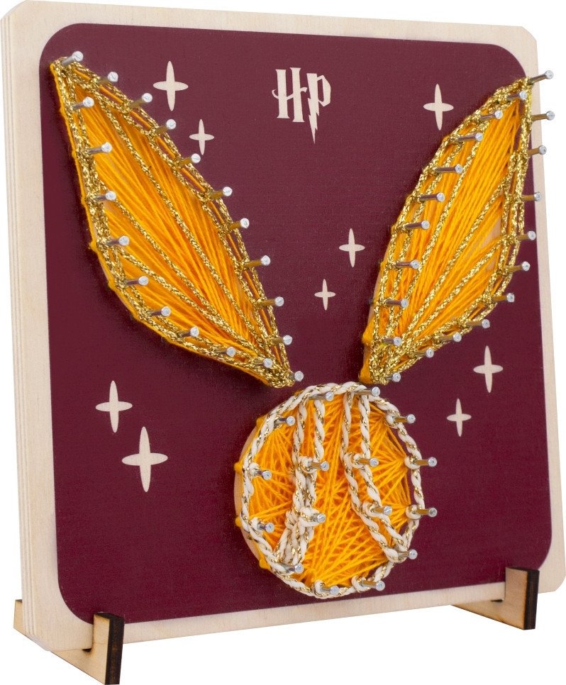 | Информация | - Набор для творчества Woody Цвик-арт "Золотой снитч" предлагает уникальную возможность раскрыть свой творческий потенциал. - Этот набор позволяет создать картины нитями, вдохновленные миром Гарри Поттера, и является увлекательным подарком для детей и взрослых. - Набор включает в себя все необходимые материалы для создания картины, включая деревянную основу, нитки, гвозди и специальный держатель для безопасного творчества. - Этот увлекательный творческий набор позволит детям создать свой собственный коллаж, а также украсить свою комнату объемным панно из нитей. - Создание картины из нитей проходит в два этапа, включая веселое вбивание гвоздей и закручивание ниток для создания объемного эффекта. |