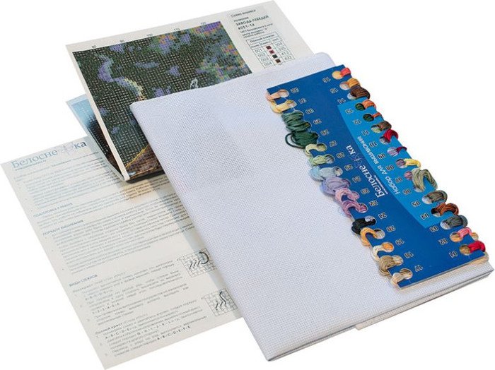 | Комплектация | мулине (на бумажном органайзере), иголка (2 шт.), схема, инструкция, канва |