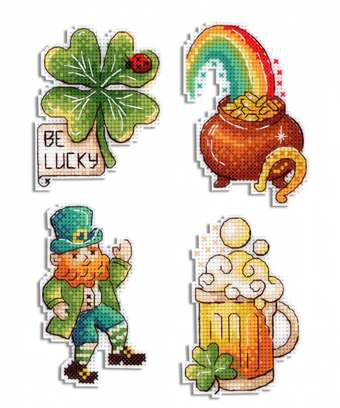 | Комплектация | канва пластиковая 14 каунта, нитки мулине 17 цвета, фетр белого цвета. магнитное полотно, игла, схема для четырех сюжетов и руководство по вышиванию. |