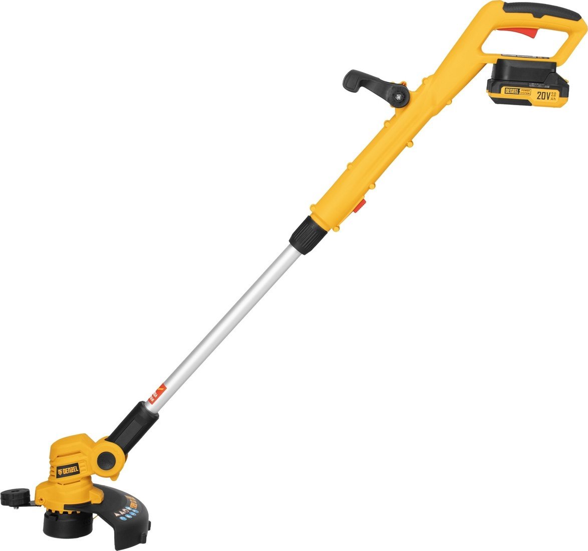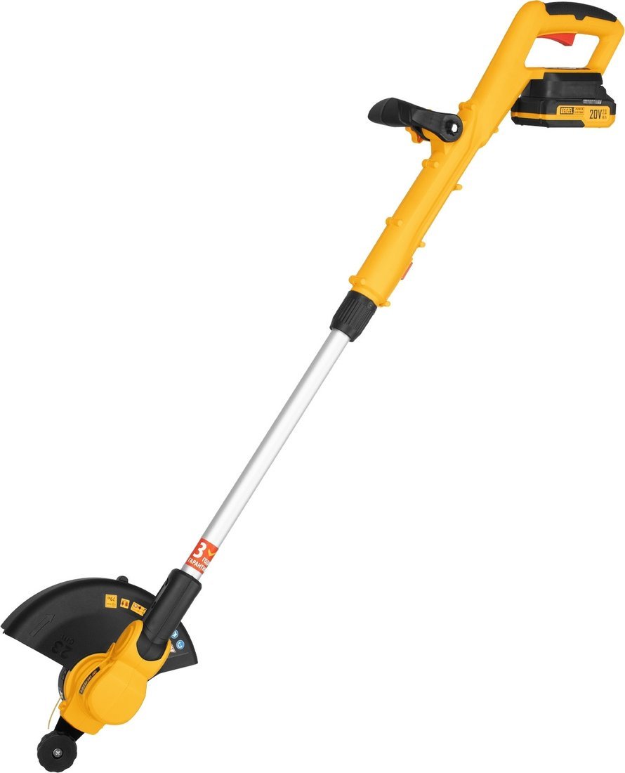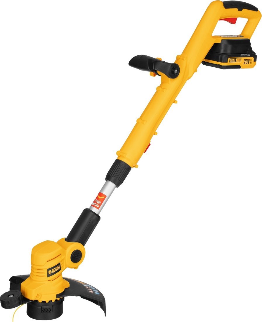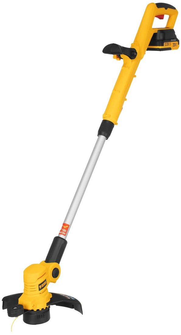 | Комплектация | - Триммер - Дополнительная рукоятка - Комплект крепежа - Кожух защитный - Опорное колесо - Аккумуляторная батарея Denzel Power System - Зарядное устройство - Руководство по эксплуатации с гарантийным талоном |
