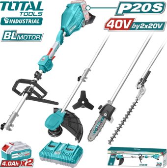 | Комплектация | - Корпус с бесщеточным двигателем - 1 шт. - Насадка-триммера TATLI4012 - 1 шт. - Насадка-кусторез TATLI4013 - 1 шт. - Насадка-высоторез TATLI4014 - 1 шт. - Аккумулятор TFBLI20021 4,0 Ач - 2 шт. - Зарядное устройство TCLI2034 на 2 аккумулятора - 1 шт. - Триммерная головка с леской 5 м - 1 шт. - Нож трехлопостной 255 мм - 1 шт. - Цепь 8'' - 1 шт. - Шина 8'' - 1 шт. - Чехол для шины - 1 шт. - Чехол для ножа кустореза - 1 шт. - Плечевой ремень - 1 шт. - Шестигранный ключ - 2 шт. - Гаечный ключ - 2 шт. - Инструкция - Коробка |