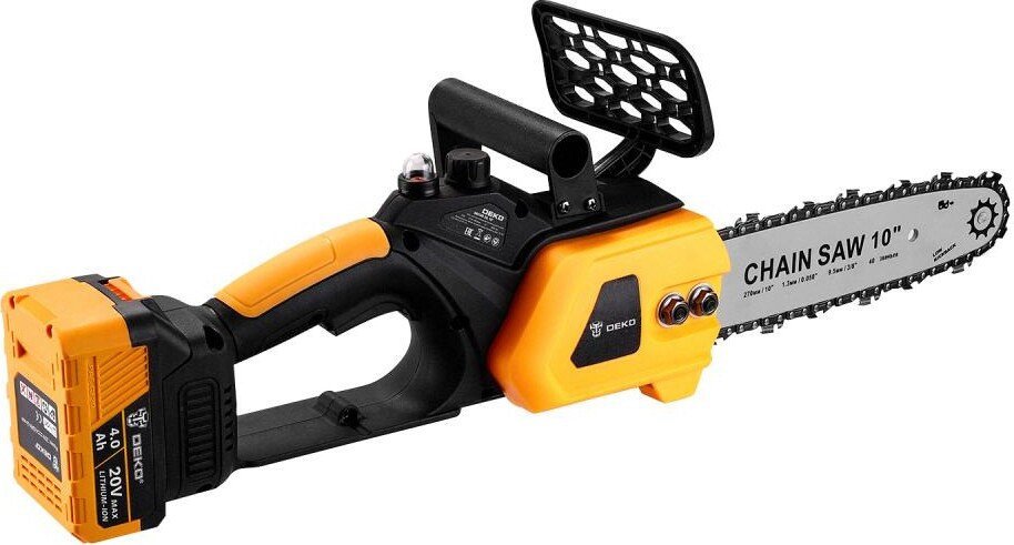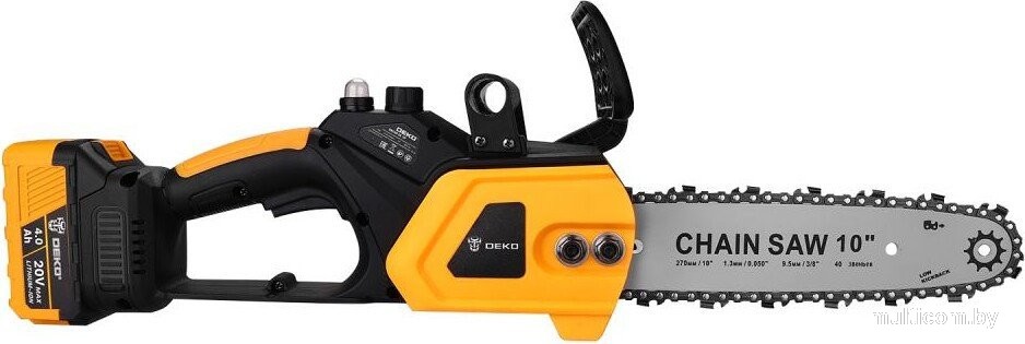 | Информация | Пила цепная аккумуляторная бесщеточная в кейсе DEKO DKCHS 20, 10", 20В, 2x4.0Ач, з/у применяется при работе в мастерской или в саду для распиливания различных материалов. Предназначена для пропилов в древесине и пластмассе. Инструмент работает от литий-ионного аккумулятора. |