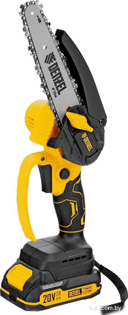 | Комплект поставки | - Мини-пила цепная аккумуляторная; - Масленка; - Аккумуляторная батарея Denzel Power System; - Зарядное устройство; - Кейс; - Инструкция по эксплуатации с гарантийным талоном. |