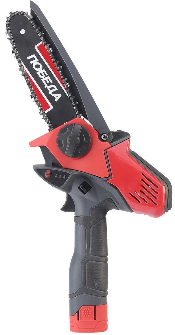 | Комплект поставки | - Мини пила, - пильная шина, - пильная цепь, - аккумулятор, - зарядное устройство, - защитный кожух, - винт и пружина защитного кожуха, - отвёртка для регулировки натяжения цепи - емкость для цепного масла, инструкция. |