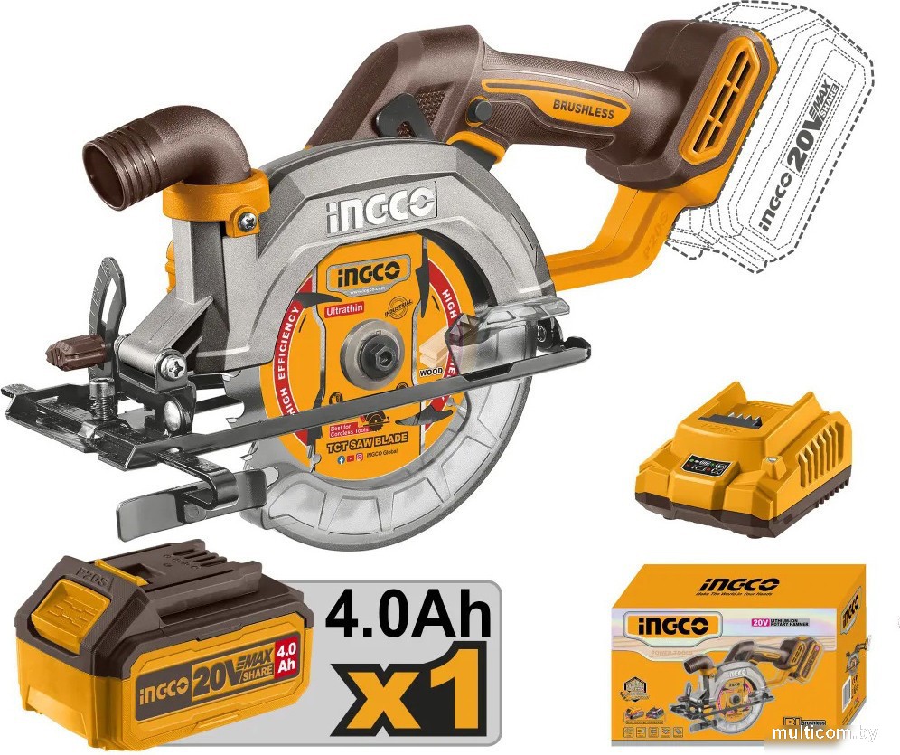 | Комплектация | - циркулярная аккумуляторная пила - 1шт, - пильный диск TCT 140х20 мм 24Т TSB1403 - 1шт, - аккумуляторы 20В Li-ion 4.0Ач - 1шт, - зарядное устройство 2.0 А - 1шт - ключ шестигранный 5мм, - параллельный упор - 1шт, - инструкция |